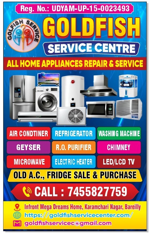 This is the official verified contact number of Goldfish Service Centre, Bareilly (7455827759) for AC, Refrigerator, and Washing Machine , microwave ,geyser ,chimney ,repair services.